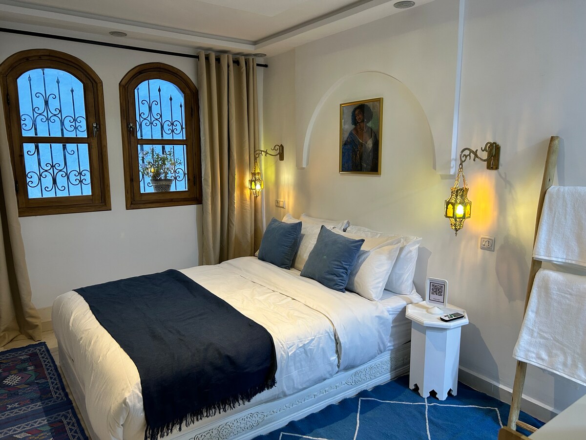 Come experience authentic Chefchaouen in Dar Cherif, a private studio located in the heart of the city, within a traditional home of a local Chaouen family. With a renovation done with love, this studio combines comfort and local charm to offer you an unforgettable stay. Perfect Location: Just 2 minutes from Outahamam Square 3 minutes from Parador and parking (the nearest parking is at Hotel Parador) Near all the tourist sites of Chefchaouen, You can explore the entire city on foot.