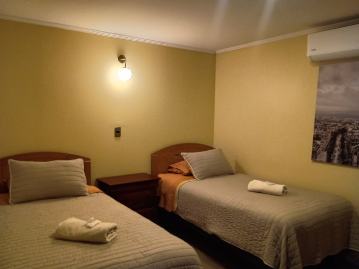 Disfruta de una habitación ejecutiva privada, moderna y confortable en una ubicación céntrica. Equipada con aire acondicionado, TV de pantalla plana, smartv, tv cable y baño privado. Ideal para viajeros solitarios o de negocios que buscan comodidad y tranquilidad. ¡Tu refugio perfecto en la cuidad de Talca.