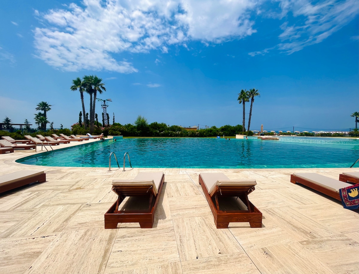 Our new and pleasantly furnished 1st floor apartment located in Talea resort, offers a tranquil environment, making it an ideal place to unwind and escape from the city and makes for a memorable vacation in Albania. Steps away from the beach and swimming pool, guests can easily access the sun, sand, and refreshing crystal clear waters of the Adriatic coast, ensuring plenty of opportunities for leisure. Not forgetting to mention free parking and supermarket within the resort.