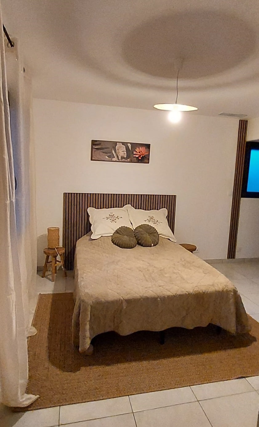 L’ORIENTAL – Suite de Luxe ✨ Vivez une soirée inoubliable dans notre suite 70 m² chic orientale : Spa privatif , balnéo, sauna, cabine double douche diffuseur hammam, fauteuils et table de massage , vidéoprojecteur , ciel étoilé , déco raffinée. Profitez d’une ambiance romantique et relaxante, intimité totale et moments magiques à deux . À proximité : autoroute A7 , Safari Parc de Peaugres , plan d’eau , Musée de l’Alambic , ViaRhôna , commerces du village , Green7 , Vienne, Lyon, Valence.