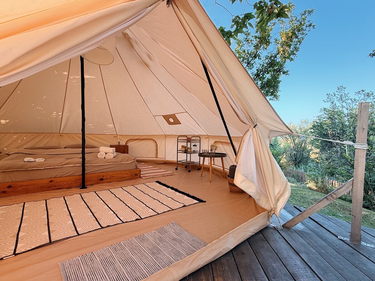 Chic bell-tent with a Mountain View