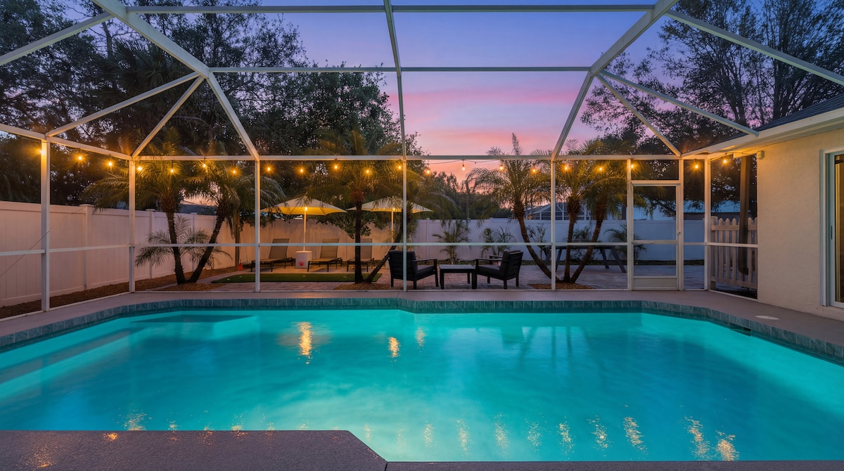 Welcome to our beach home ! Located in a beautiful neighborhood where you can unwind & relax with the family after a long day at the beach. We are located only a short drive to the finest beaches in FL where you can find sand dollars with the kids & view breathtaking sunsets ! Play a game of pool, grill out on our patio, & enjoy our fire pit & enclosed pool !! This easy access one-level home sleeps up to 8 people. Conveniently located within minutes from groceries, restaurants, and attractions.