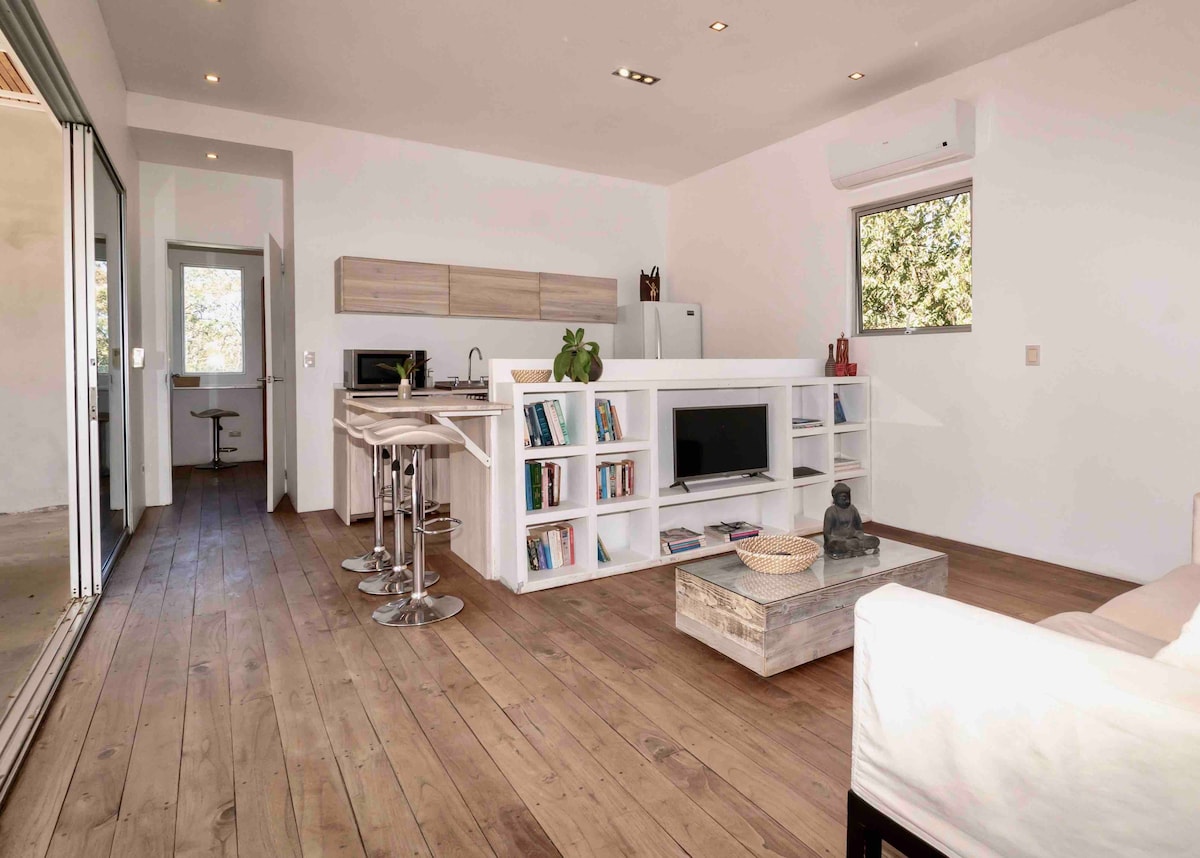 Rooms for a maximum of two people, a double bed, private bathroom with shower with hot water Air conditioning, TV, mini fridge and large walk-in closet The hotel has a dining area, co-working area, swimming pool, access to the nearby beach (5-minute walk), and typical breakfast included in the rate