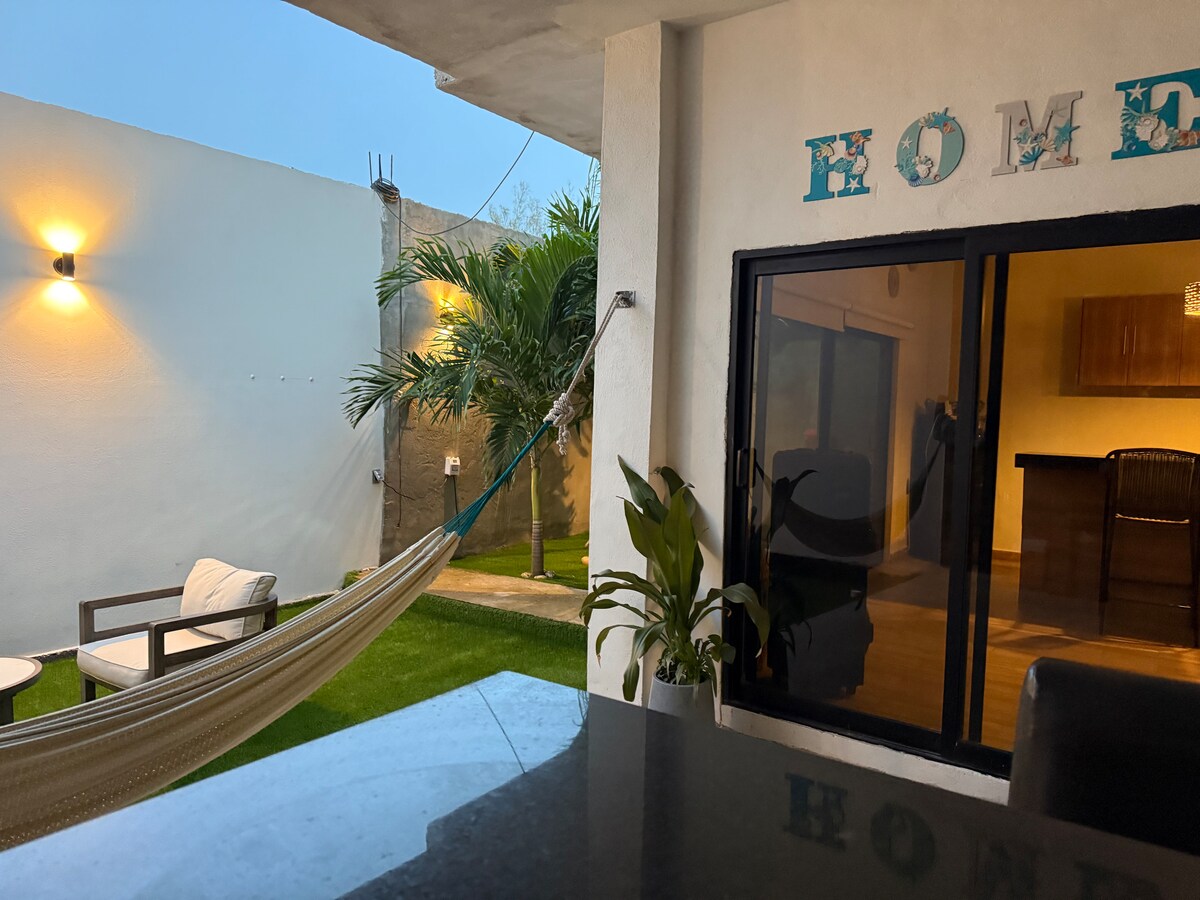Experience a delightful loft retreat perfect for business travelers and long stays, featuring modern amenities and a serene garden atmosphere. - Kitchen with fridge, micorwave and stovetop - Work space with ergonomic chair and work lamp. - 150MB WiFi by Starlink. - Full size bed - A/C - TV 42" with Netflix - Dining table 2 chairs - Bathroom with towels, soap and medicine cabinet - Great location, 7 minutes from International Bridges and the Consulate, 3 minutes from the Highway.