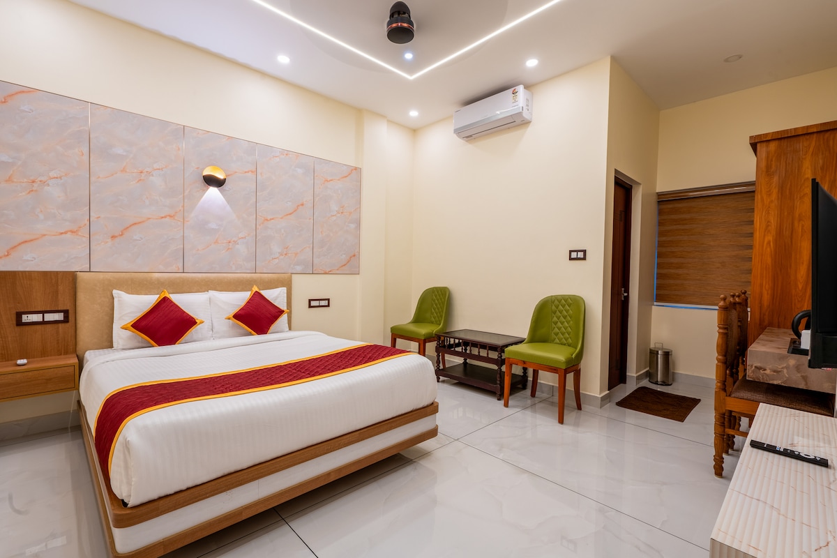 This is a compact, air-conditioned room located on the second floor . Perfect for solo travelers or couples, the room includes high-speed Wi-Fi and a smart TV for your entertainment. Please note: Car parking and lift are not available. Nearby Attractions: Rock Beach â 5 mins drive / 15 mins walk White Town â 10 mins walk Sri Aurobindo Ashram â 10 mins walk Popular cafĂŠs and restaurants â within easy reach.