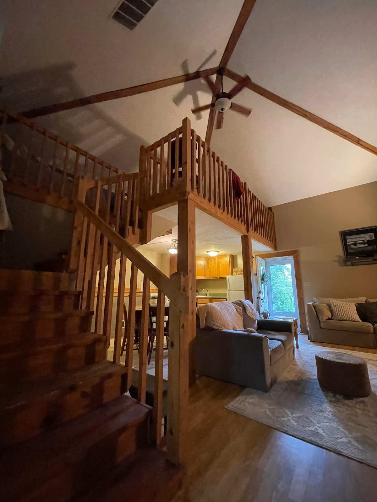 Settle into a fully renovated 1910 cottage perched on a steep hill above Buffalo Bill Cody’s original homestead. Enjoy a charming park right behind you and stunning river views in front. The cottage comfortably accommodates up to six guests. Before booking, please note: - The cottage is located on a steep hill. - You will hear trains, as LeClaire is a river and train town. 🚂🌊 - This is a wooded property, so expect sticks, leaves, and bugs. 🌿🐞 - There are many steps.