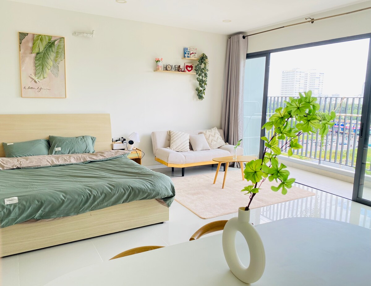 A bright Scandinavian-style balcony studio in Lavida Plus, District 7, just minutes from Phu My Hung, RMIT, SECC, and Crescent Mall. Ideal for couples, solo travelers, or business guests looking for a clean, cozy, and fully equipped stay in Saigon’s most peaceful neighborhood. Thoughtfully designed for both short and long stays, the studio offers modern comfort, natural light, and everything you need to feel at home We also offer free mid-stay cleaning for stays over 7 nights 💚