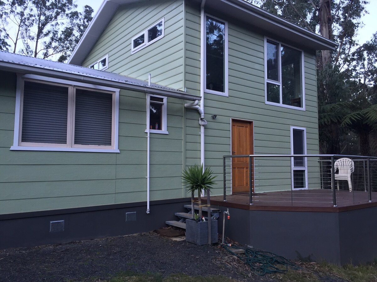 The Little House on the Hill at the eastern end of Warburton overlooks the chooks, the veggie patch, the orchard and across the valley to gorgeous 270° views. It is next door to the Big House, set on an acre that slopes down to the Yarra River. A great swimming spot on hot days and a good way to access the town and the rail trail (five minutes there, maybe ten minutes return - uphill). There are plenty of lovely walks nearby including the Aqueduct Trail that starts further up the hill.