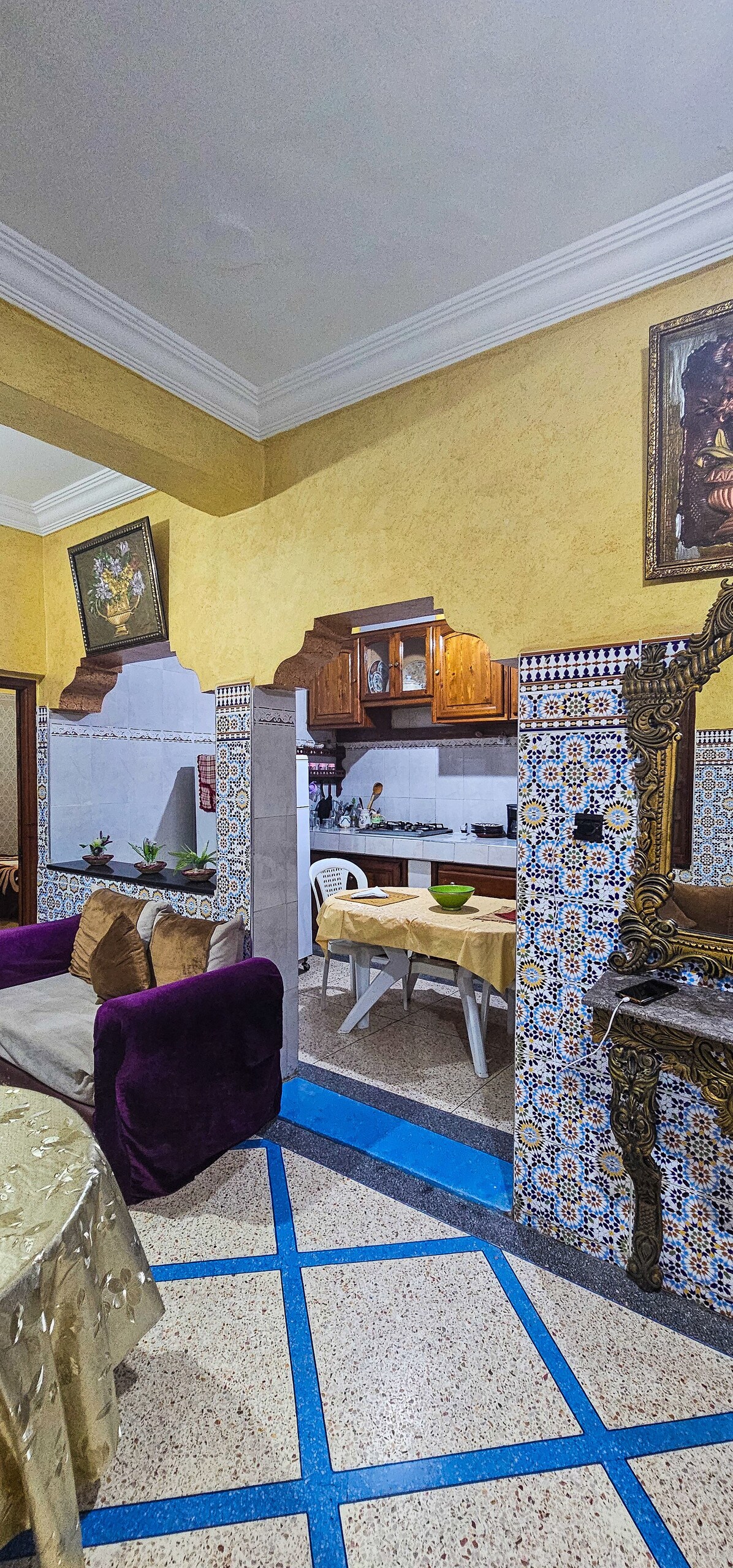 Easy access and Parking in Taroudant’s historic Medina with three bedrooms, three bathrooms, a kitchen, and a rooftop terrace overlooking the city walls and Atlas Mountains. Guests can prepare tea, coffee, cook, you can also book excursions to the surrounding area, Atlas Mountains, or guided desert tours. Centrally located, the Riad is just minutes from cafés, restaurants, and the souk. Secure parking right in front of the house!