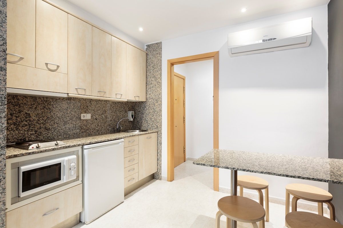 El apartamento Studio está formado por un baño independiente y una unidad donde se combina zona de descanso, zona de estar y cocina americana. Todo pensado para parejas o familias pequeñas que desean pasar unos días en Tarragona. La ubicación es inmejorable pues tenemos la playa a 5 minutos a pie, estamos en la Rambla Nova (artería comercial de Tarragona), la Part Alta (casco antiguo) se encuentra a 400 metros del hotel, si vienen a algún evento tenemos el Palacio de Congresos y Recinto Ferial a tan sólo 200 metros. En definitiva una estancia pensada para olvidarse del coche y disfrutar de Tarragona.