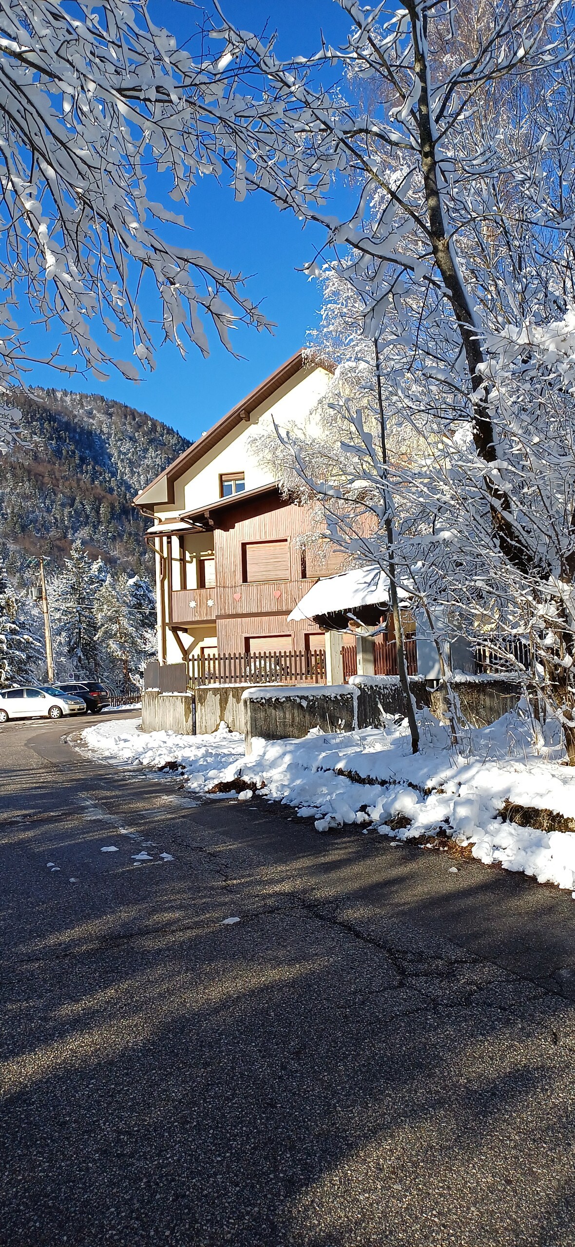 Spacious mountain apartment with three double bedrooms, windowed bathroom and bright living area with large kitchen and dining table for 6. Two bedrooms include a desk, all with windows and large wardrobes. Ideal for families, groups and remote work. Private parking for up to 3 cars. Minutes from Monte Lussari, ski slopes, Fusine Lakes, Lake Cave del Predil, Alpe Adria cycle path and walking trails in nature.