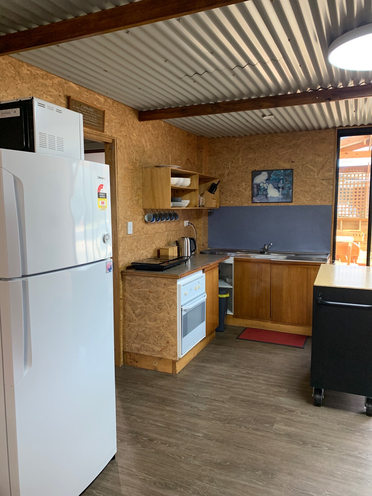 Muka in Akaroa. A quiet little surf shack set on the edge of Akaroa, in a sleepy cul-de-sac just minutes away from Beer Barrel beach and Peron Dunes. Built back in '72 a once seafoam green shack has undergone a loving restoration. Keeping some nostalgic touches, the barn doors and surfboard were made using the old bunk beds from the original shack, a light and airy space has been created to entertain friends and family, a home away from home.