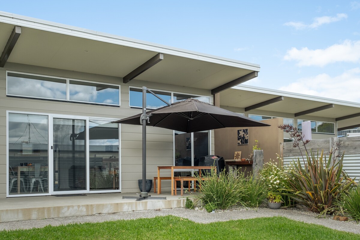 Blue is a contemporary bungalow 200m from Clifton Beach. On the deck of the bungalow is a 1.8m round timber hot tub that is always hot and your to use exclusively, great in summer or winter. Blue is one of three new bungalows on a 5 acre block. We live in one, rent another and short stay Blue. You share the site but will have privacy as you wish or say hi and have a chat. Clifton is a friendly end of the road beach community.