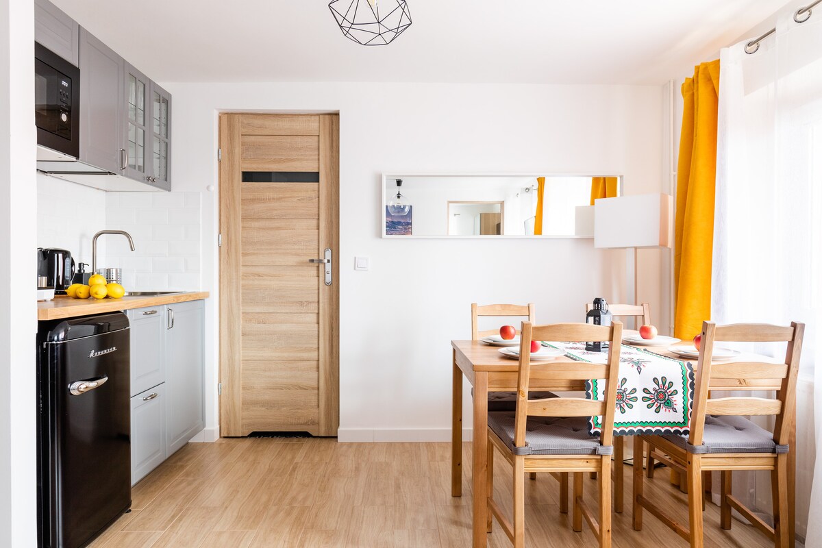 APARTAMENT KAWOWY is a cozy and stylishly decorated place where many guests will feel like in a mountain cottage. This impression is evoked by the large amount of wood with which this charming and stylish interior has been finished. An additional advantage of the place is a bright balcony with a view of the mountains and a warm living room equipped with a fireplace. The apartment is located in a quiet part of the city, away from the hustle and bustle, but only a few minutes by car from the center.