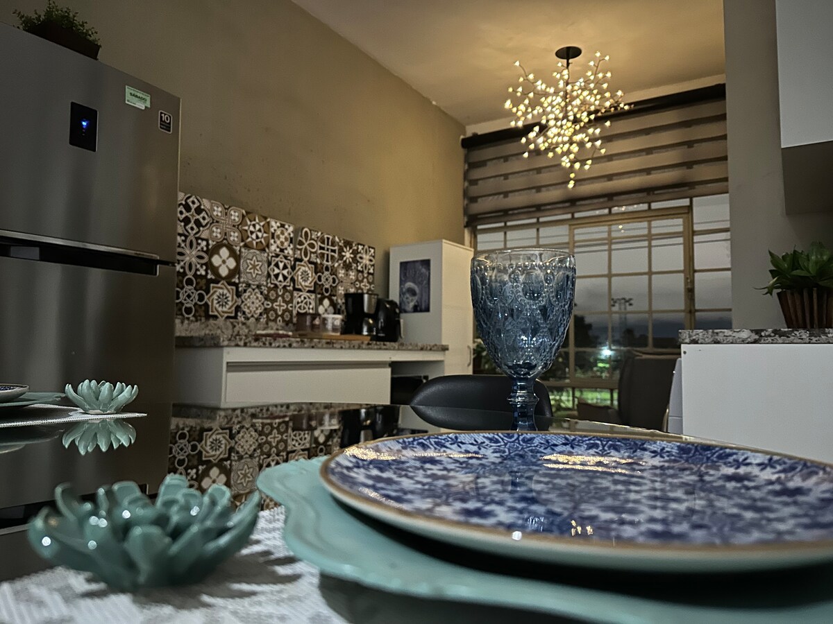 Apartamento confortável, altamente decorado, com garagem, ar condicionado, Wi-Fi, Netflix, máquina de lavar e secar, cozinha completa, eletroeletrônicos necessários, ferro de passar., secador de cabelo, roupa de cama e banho de qualidade. Segurança 24h, “Mensagem importante” *O hóspede precisa subir alguns degraus* Como cortesia, fornecemos uma cesta para seu café no primeiro dia da estadia, conforme mostra na imagem do anúncio