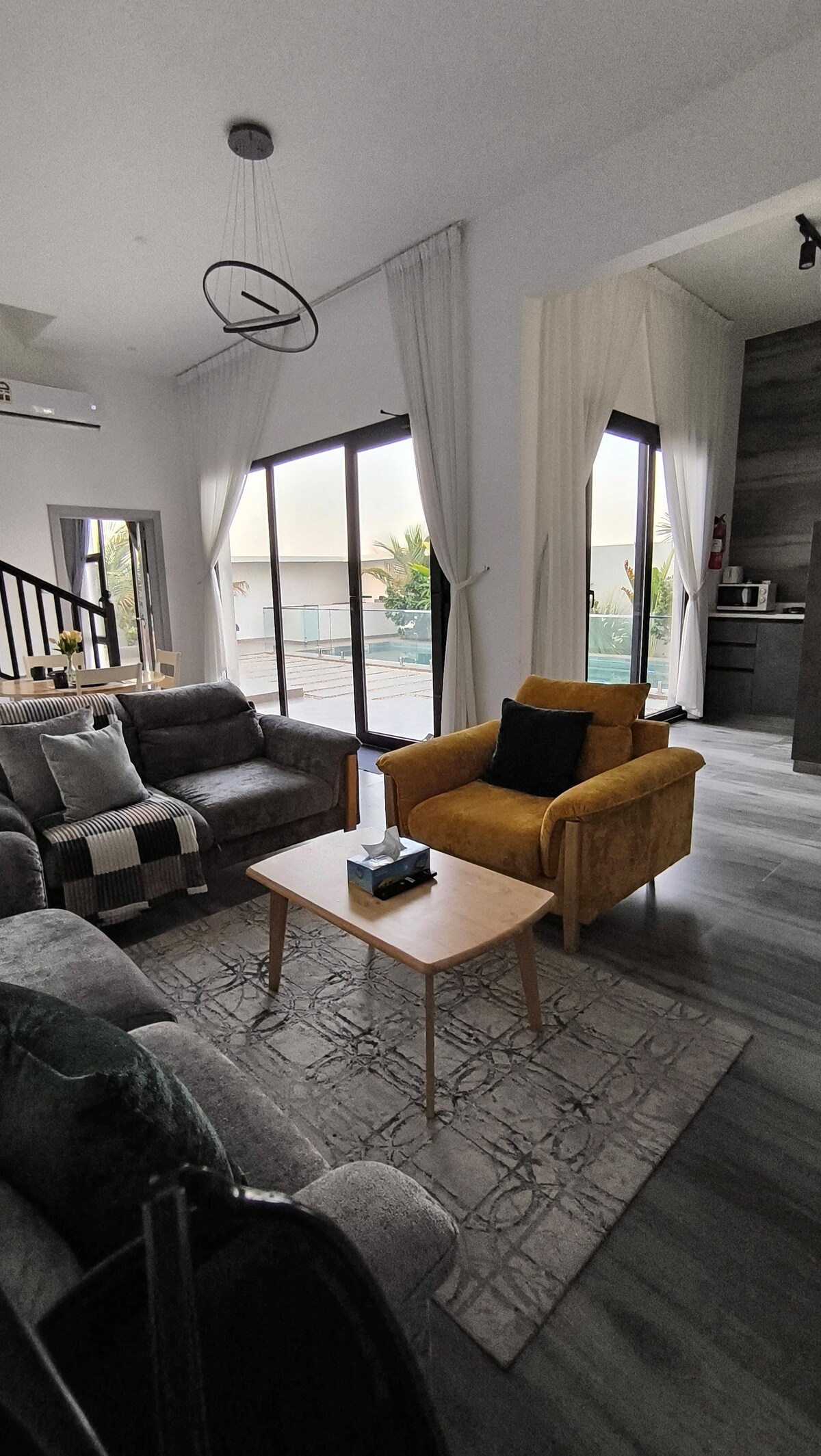 Welcome to your perfect Omani getaway ☀️ Just 35 minutes from Muscat Airport, this beautiful villa is ideal for couples and families. Enjoy the sparkling, open-air swimming pool and soak up the sun. The house features two comfortable bedrooms, a spacious living room, and a unique bathroom with a bathtub that views the pool—pure relaxation Conveniently located near a major mall and fantastic restaurants. Book your stunning, sunny escape today