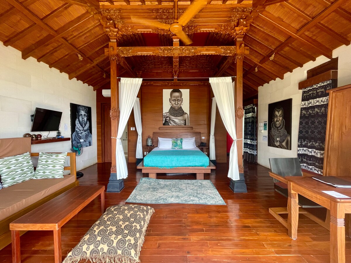 The Joglo Premier Villa is part of our boutique hillside resort, Karuna El Nido Villas. Located on a hill with astounding panoramic mountain and sea views, we are less than 10-mins ride from El nido town center and Corong corong beach is a 5-min walk from the property’s highway. Amazing views, ample space, and outstanding service awaits guests. Living space composed of 70sqm interior and 20sqm wrap around balcony awaits guests for a comfortable stay. + a la carte breakfast included