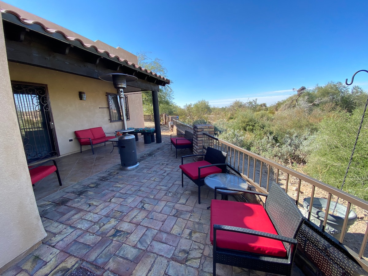 Charming 1BR, 1BA Santa Fe style home with private detached 1BR, 1BA casita right on the wash with beautiful views. Centrally located close to golf courses and 4x4 trails. Wake up to the sunrise over the mountains, walk or bike through the peaceful Foothills, and enjoy a large private backyard with BBQ, fire pit, and outdoor seating. AC in both main house and casita. RV parking with hookups is also available by request. This is a perfect spot to relax in the sunniest place in the world!