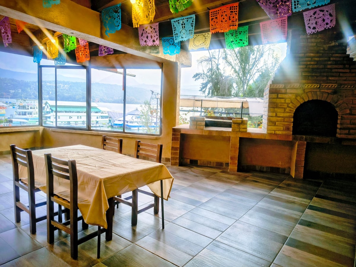 Beatiful rustic cabin with a wonderful lake view, it has a huge terraza. Esta cabaña tiene un estilo unico, es completamente rústica, con chimenea tradicional de valle, departamento independiente dentro de una zona de departamentos. Muy amplio espacio. La ubicación y la vista son inmejorables. Con techos de madera y pisos tradicionales de barro. Todos los restaurantes están cerca, el embarcadero y el zócalo. Excelente para 4 o mas personas.