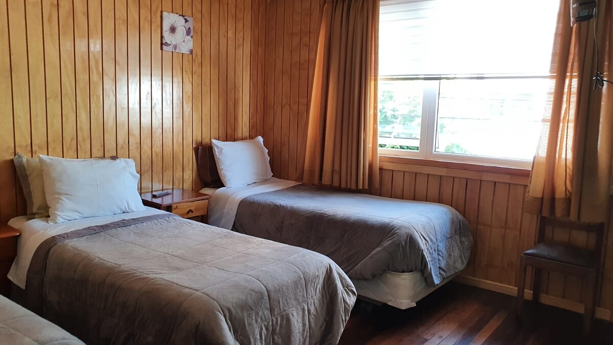 Comfortable room for 2 people, single beds, breakfast included, steps from Temuco's Rodoviaro (intercommunal bus terminal). It has 2 full bathrooms that are shared with other rooms.