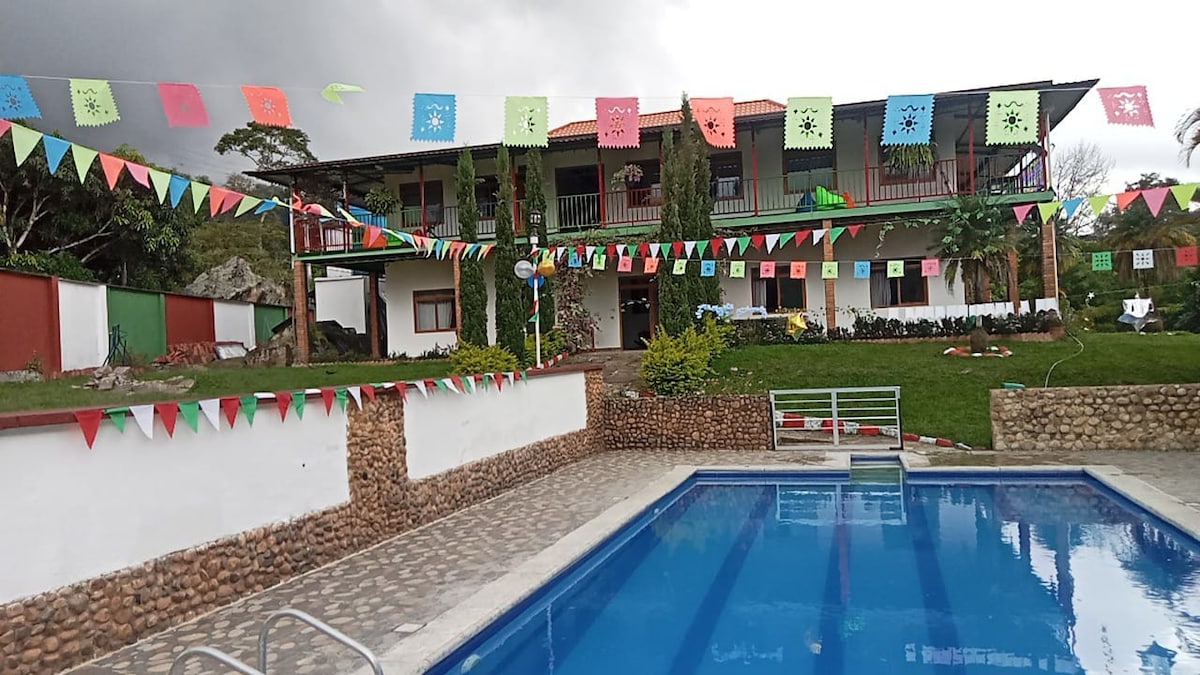 Country house to rest and enjoy in the middle of nature with a variety of climates, beautiful views where you can also hold your social events without any disturbance from neighbors or nearby noise, it also has an outdoor heated pool, large BBQ, very large social areas, bowling alley, mini tejo, catamaran, chimney, 2 hammocks parking area for more than 10 vehicles. Located just 1:15 hours from Bogota and 20 minutes from the Cundinamarca mesa with tourist sites