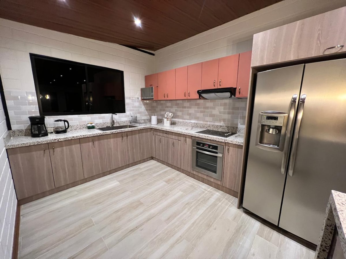 Beautiful modern cabin-style apartment with large windows, freshness and local woods. It has 2 spacious rooms with king size beds for 3 people, for maximum comfort and convenience, with separate entrance, privacy and tranquility, it consists of a living room, dining room and a full kitchen with all the implements, in addition we leave you coffee, tea and free water. It has 2 55" plasma TVs with Amazon Prime, and HBO, plus 100 Mgbs ultra high speed internet.