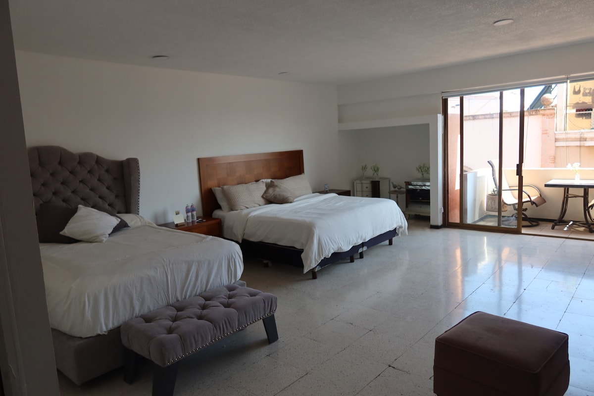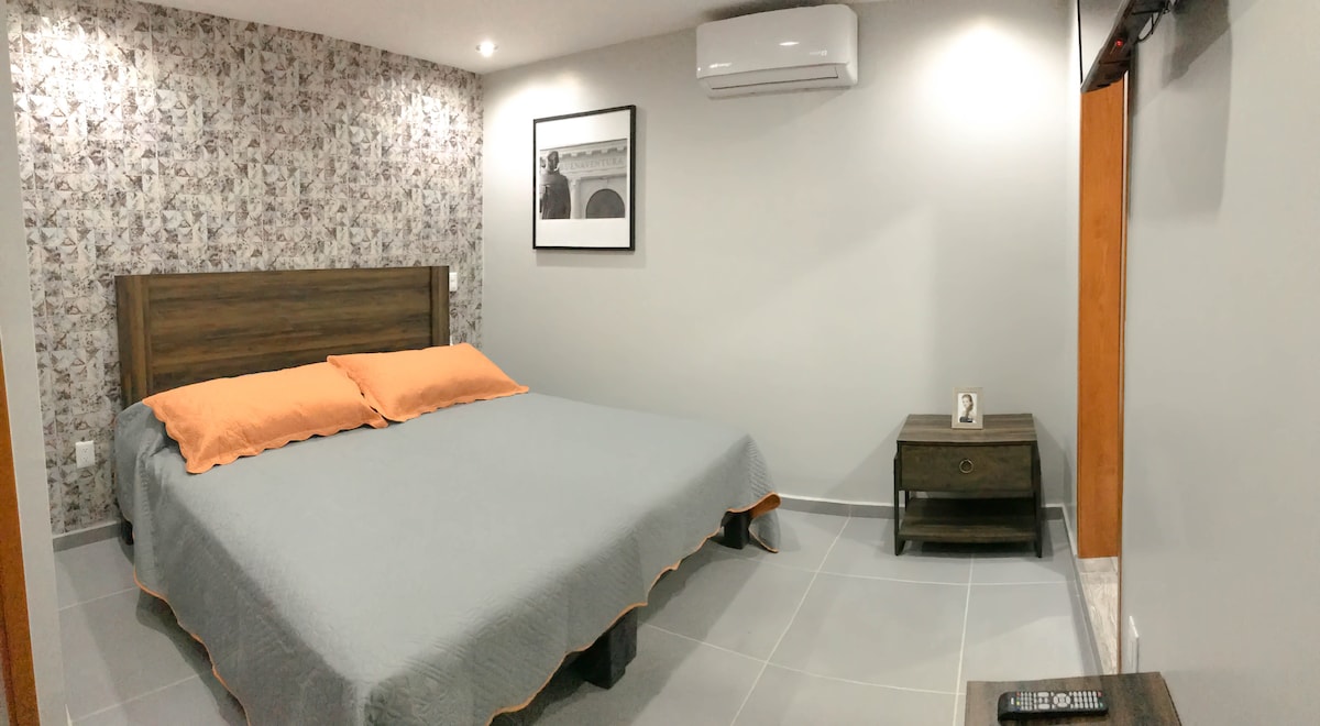 Enjoy this small 25 m2 mini-loft for 2 people in a double bed, with everything you need in a privileged area 5 minutes by car from Punto la Gloria, 6 minutes by car from Palenque Tepatitlan and 6 minutes by car from downtown.