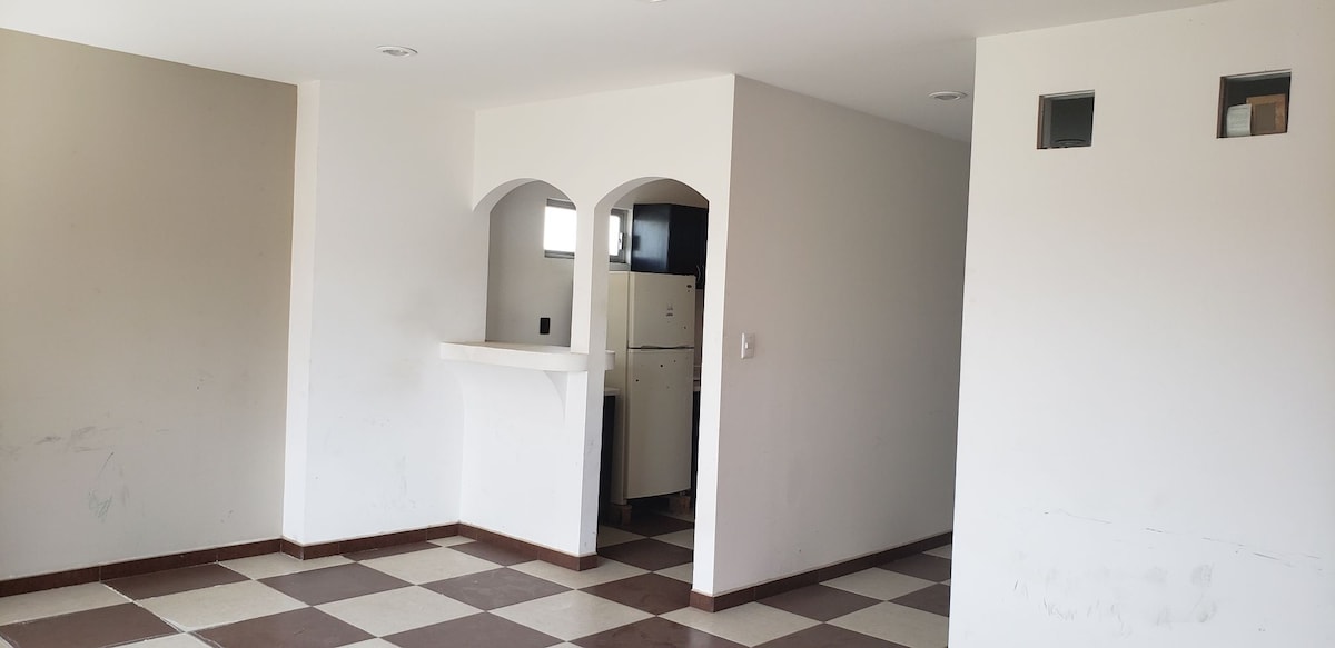 Enjoy a comfortable and modern stay in this cozy apartment located in the center of Perote, ideal for couples, families or groups of up to 5 people. Its location is unbeatable: just 3 blocks from Perote's main square and 4 blocks from the historic San Carlos Fortress, you can easily walk to discover the town's main attractions. A few steps away you will find a pharmacy on the corner, a typical food restaurant one block away and a Bodega Aurrerá just three blocks away.