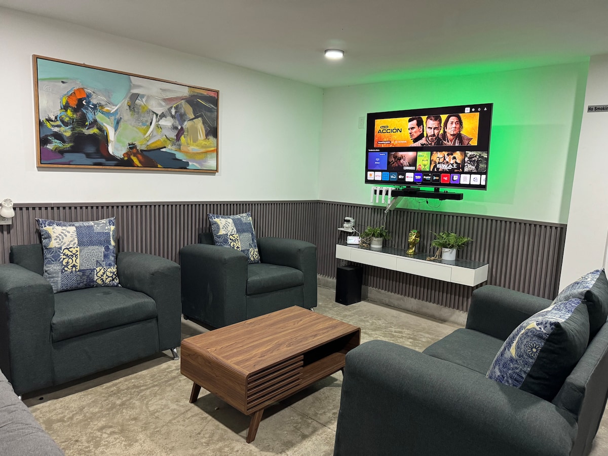 Este elegante alojamiento es ideal para viajes en grupo y familiar. Se encuentra dentro de un fraccionamiento en Tequila Jalisco y cerca de el centro histórico. Cuenta con una terraza muy cómoda y una vista a nuestro volcán de Tequila y la Sierra Madre. La casa es bastante amplia con 4 cuartos Tv y aire acondicionado en cada uno de ellos para una mayor comodidad.