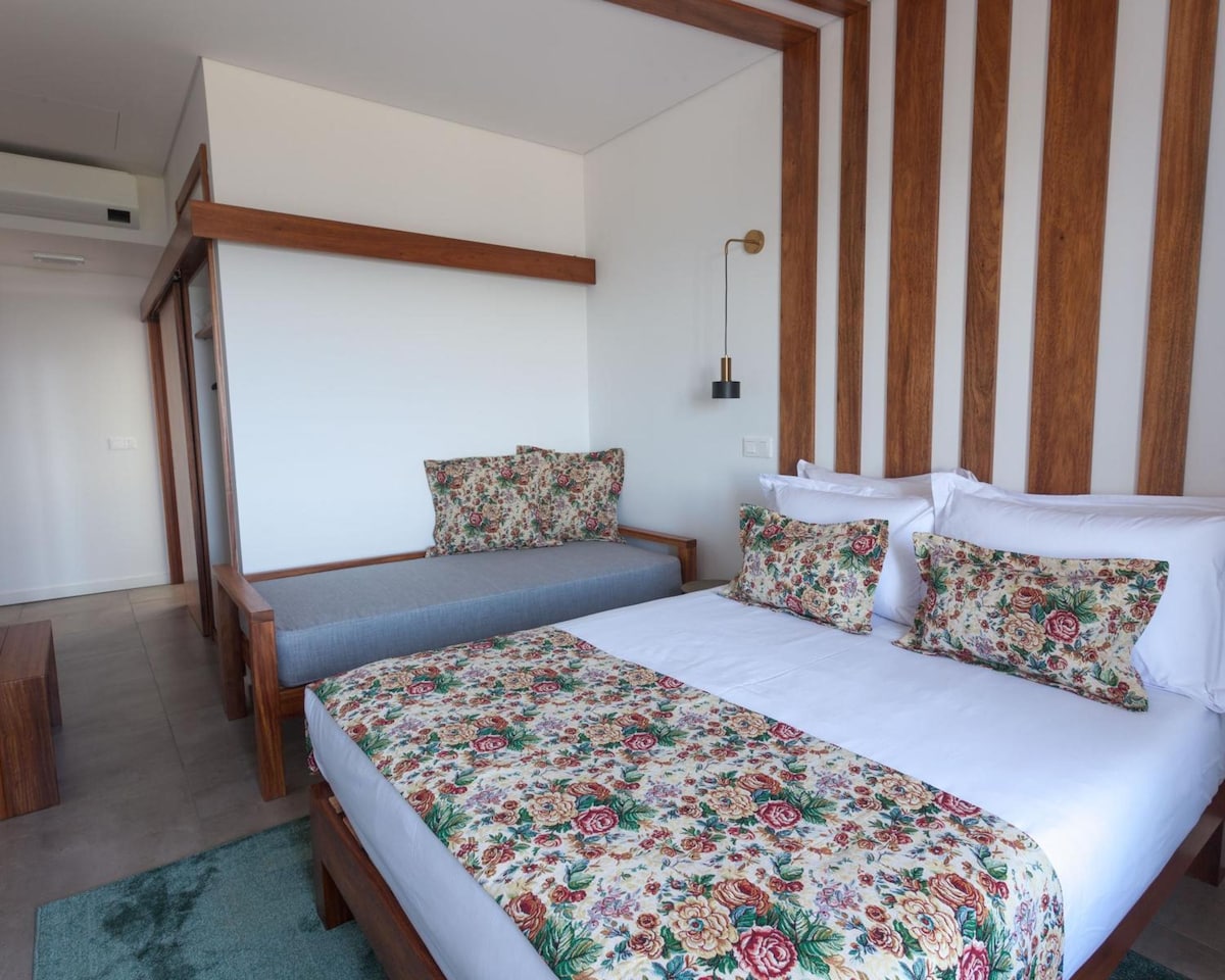 Luxury & Comfort in Our Twin Room with dedicated outside bathroom . Experience modern elegance in our bright twin room with a shared patio. Just 100m from Silveira’s beach and a 15-min walk to the city centre, enjoy beachfront living with shared luxuries like a pool and lounge. Fully equipped kitchen, A/C, Wi-Fi, and self-check-in ensure convenience. Plush linens, essentials, and free parking add to your comfort. Perfect for remote workers or friends. Book now for a stylish and relaxing stay!