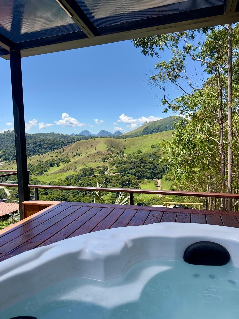Casa das Nuvens Terê is the ideal place for you to relax. The view is breathtaking, with the mountains as a landscape. Located 20 minutes from downtown Teresópolis, we are surrounded by good restaurants and activities, or if you prefer, we have all the structure so you can enjoy every minute without having to leave. It has a full kitchen, bathroom, queen bed, outdoor kitchen, heated bathtub, swimming pool (NOT HEATED), wood-burning fireplace, charcoal barbecue. ALL FOR EXCLUSIVE USE.