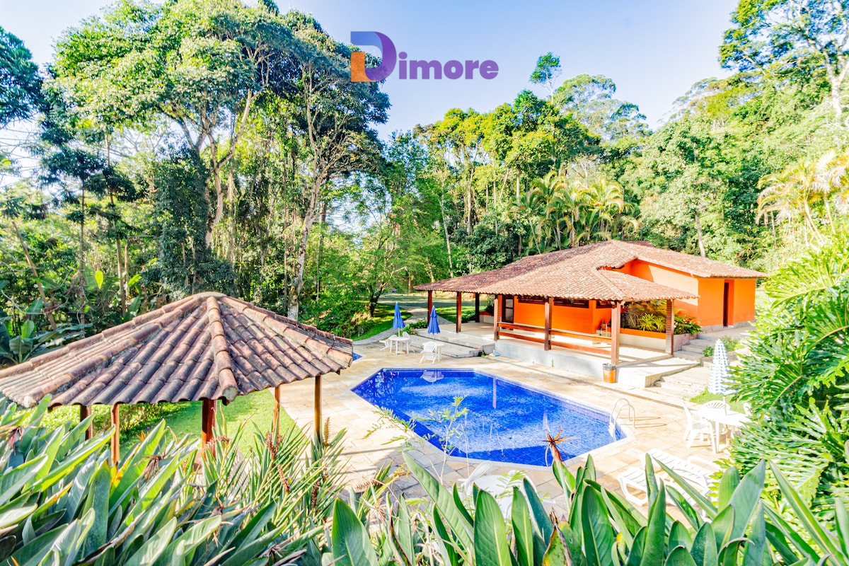 167.000 m² de lazer-Acomodando até 17 pessoas sobre camas. Muito verde, propriedade extremamente acolhedora, acomodações confortáveis. Lagos e piscina, abastecida com água cristalina direto da mina d'água, casa na árvore (decorativa), belo gramado, balanços, churrasqueiras, forno caipira, bote para passeio no lago, peixes, campinho etc. Não é condomínio, espaço 100% privativo, exclusivo para você, sua família e seu grupo. Casa totalmente mobiliada, equipada, oferece maior conforto aos hóspedes.