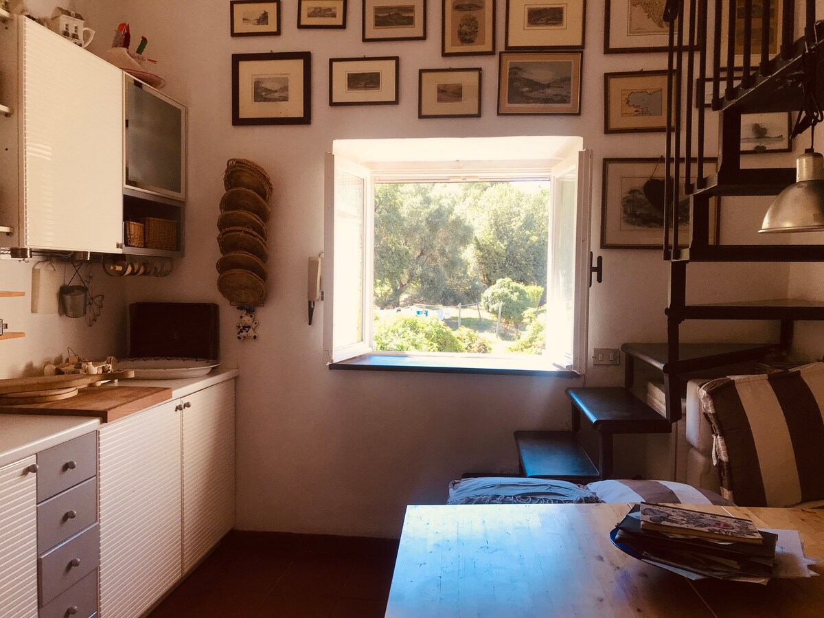 This newly renovated cottage is situated in a historic private estate immersed among secular olive trees and stone walls. The whole living space, which includes an entirely equipped kitchen, opens on the terrace thanks to the huge patio window offering a breathtaking view on the Gulf of Portovenere. There are two separate bedrooms with closets and French windows opening on the terrace, and a bathroom. The laundry area is in a separate adjoining space.