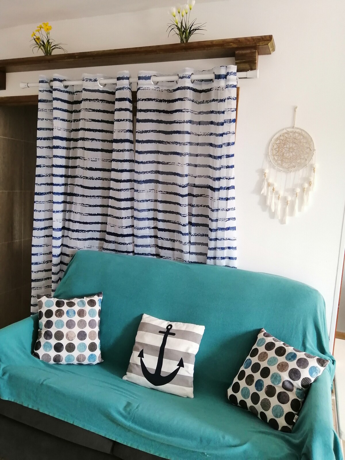 Spend a few days in our small oceanfront apartment. It's an open space, where there's no room. Second floor with elevator and stairs, newly renovated. Opened in April 2023. There is a double bed and a sofa that converts into another double bed. Ideal for two people, ask if there are more. With an additional cost of 15 euros per person per night The accommodation has everything you need for a comfortable stay: fridge, kitchen utensils, shower and beach towels, etc.