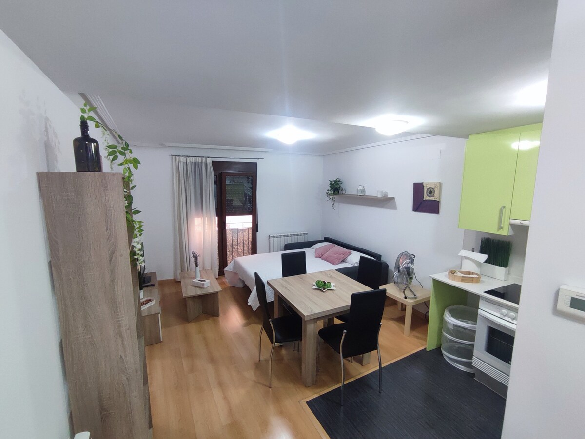 VUTE 23-017 Apartment in the center of Teruel with air conditioning, fully renovated and equipped, a few meters from the main monuments. Located in a quiet area, it has a 150 cm bed and a 150 cm Italian sofa bed. Perfect for 2-4 people Free crib It has a ceiling fan in the bedroom, portable A/C, and a powerful mobile fan in the living room. Fully equipped kitchen with all kinds of kitchenware Wi-Fi. Paid and free parking just a two-minute walk away.