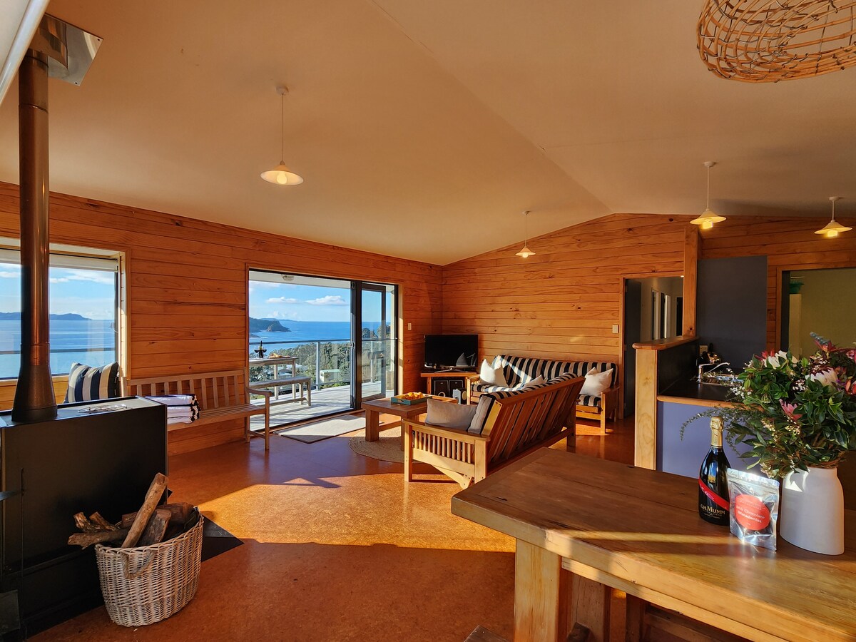 Relax and unwind at this unique and tranquil country getaway. Escape the crowds but stay handy to town. Modern single level cottage. Separate building next to main house. Expansive view to form which to enjoy the amazing views - tree lined pastures - bushclad hills - the islands of Mercury Bay Bush walks at your back door. Feed the native trout.