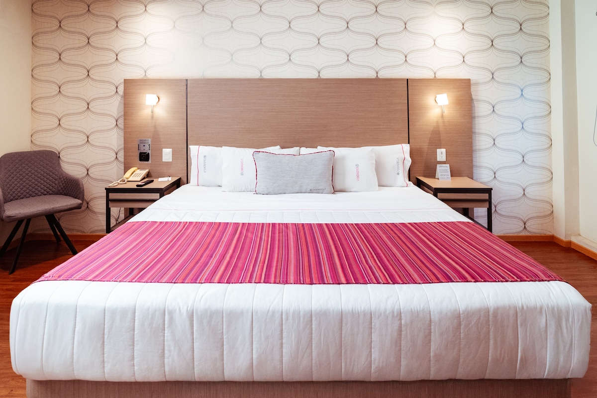Enjoy the simplicity of this quiet and central accommodation. with a King Zise bed-like. Where you will find in the surroundings multiple cultural, gastronomic and social activities a few meters from the angel of Independence and the embassy of the United States Includes an American coffee and a croissant, in the Restaurant cafe downstairs
