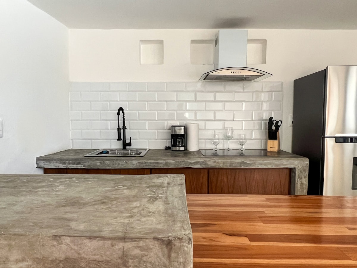 Amazing views of ocean and mountains Stroll to the beach, Malecon, plaza, and market Shared rooftop deck and dipping pool Air Conditioned Fast WIFI Modern Kitchen Triple Filtered water throughout is safe to drink Shared Bicycles Guests have described our place as quaint and homey. Our desired guests are mature adults or families. If you plan a wild Spring Break style stay, please rent somewhere else. We cannot provide housekeeping but the shared washer/dryer is free. Thanks!