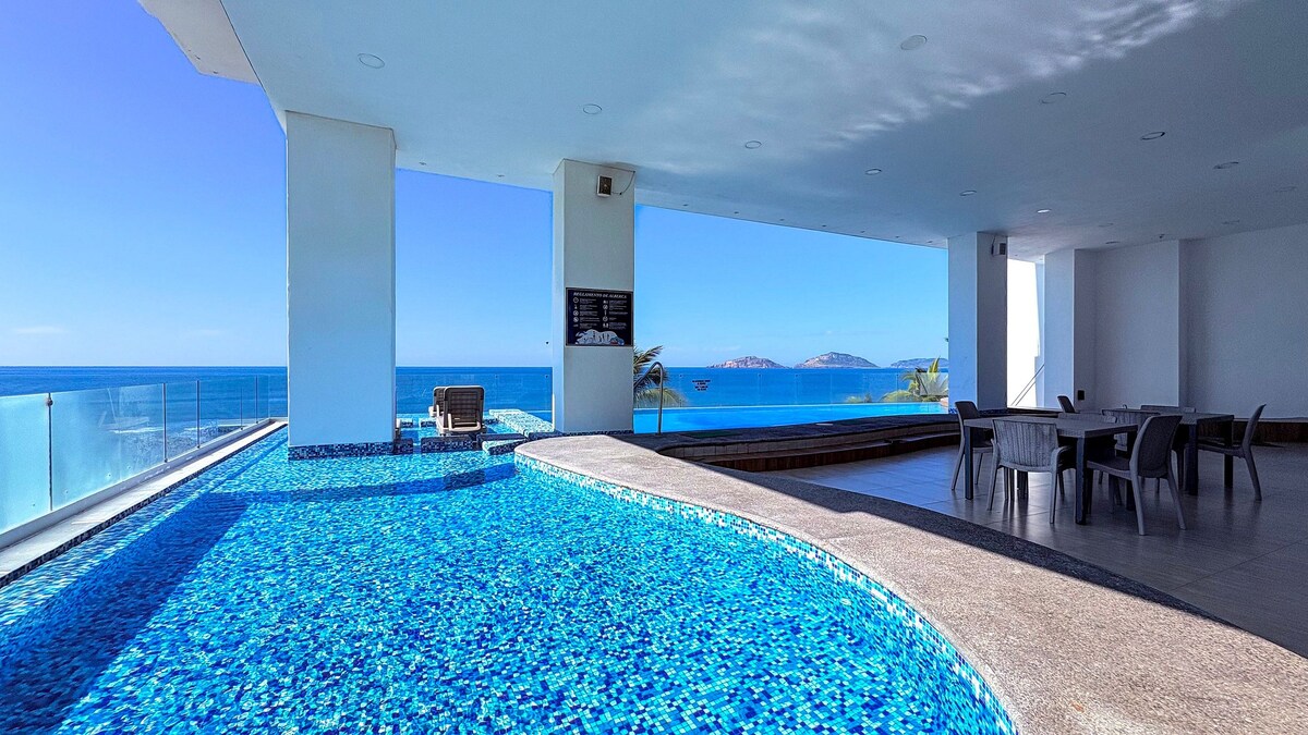 Enjoy Mazatlán from this luxurious apartment in Zona Dorada, inside the exclusive Torre Eleve. Relax on the private balcony or pool with a beautiful view. Direct access to the beach, roof bar, bowling alley, playground and gym. Fully equipped with luxury, ideal for couples, families or rest trips. Walking distance to restaurants, shops, and nightlife. Experience oceanfront luxury!
