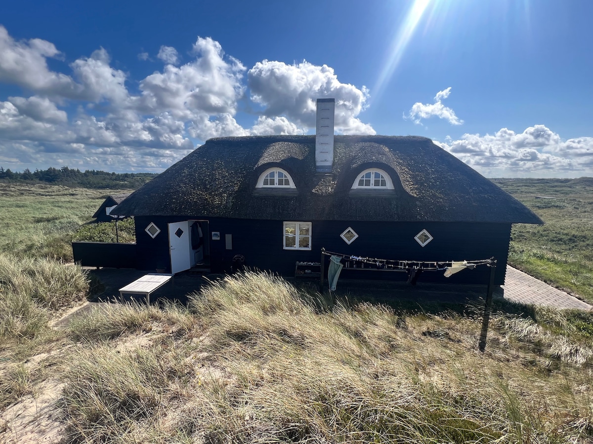 Cozy cottage with separate annex. The cottage has three bedrooms. In addition, there are two large lofts with sleeping accommodations for 4 people. In the annex, there is a workspace and a sofa bed. The house is suitable for two families of 8 people, but can accommodate up to 10 people (max 8 in winter). There is a large terrace around the house, with the opportunity to enjoy the sun all day. The cottage is surrounded by beautiful nature and 200 meters to the Hvide Klit Golf Course and 1.3 km to a lovely child-friendly beach.