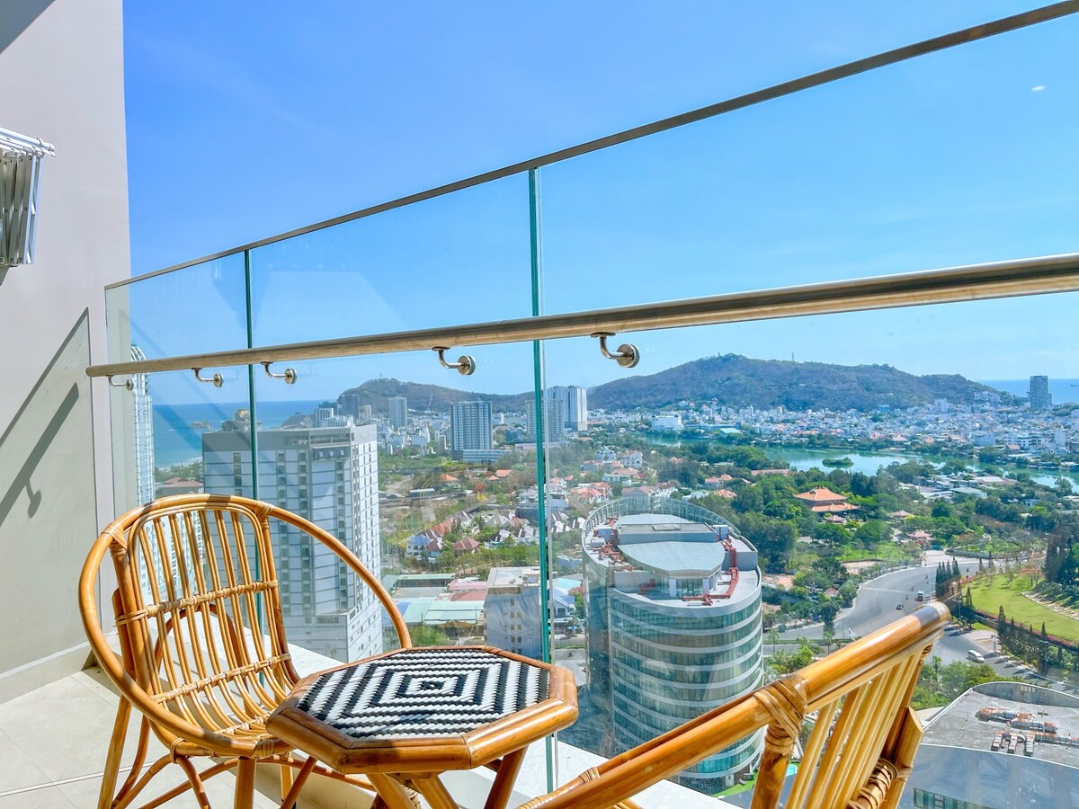 Căn hộ nằm ở tầng 24 được trang bị giường nằm êm ái, tầng cao view đẹp với tầm nhìn thành phố và hướng biển, tủ lạnh to thích hợp cho khách lưu trú dài ngày, được dọn vệ sinh sạch sẽ định kì. Các dụng cụ đầy đủ cho quý khách nấu ăn.