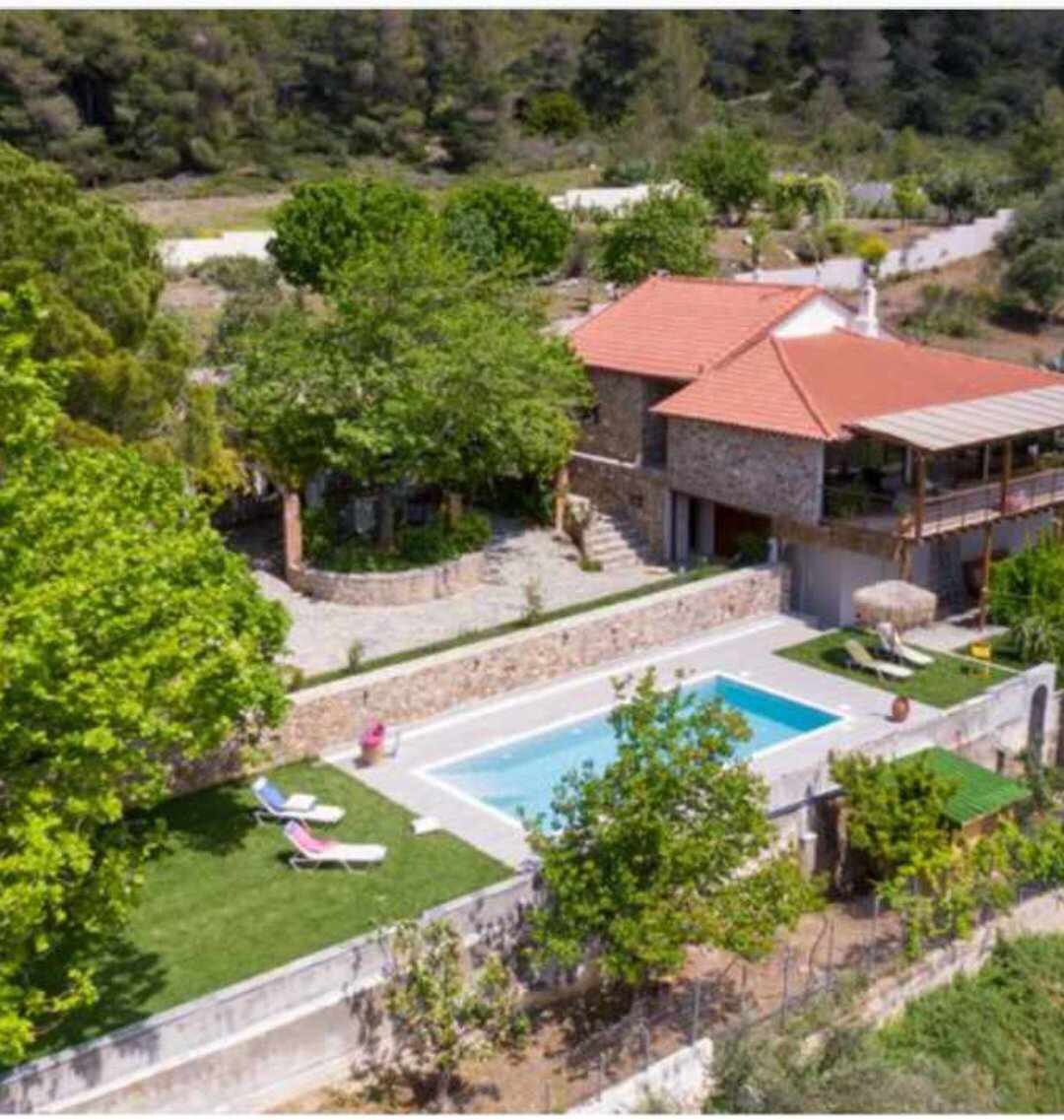 A wonderful Vintage Villa for moments of relaxation and tranquility, 100 km. by car from Athens or 1:30 hour from Athens International Airport in the quiet Private area of Dafni, on the island of Evia. It is a spacious house with amazing panoramic sea and mountain views, while it includes a swimming pool with a built-in Jacuzzi, a garden with trees and a huge terrace. Ideal for families, couples or groups looking for a relaxing holiday in nature as it can comfortably accommodate up to 7 people.