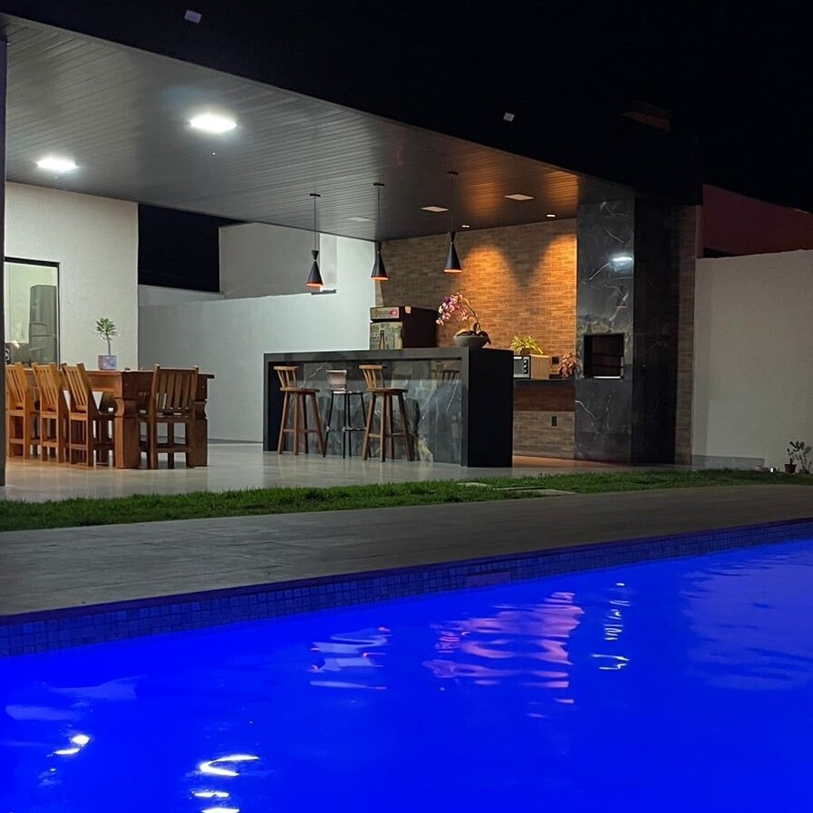 Construção nova objetivada em conforto, lazer e segurança. Amplo espaço planejado única e exclusivamente para hóspedes que procuram tranquilidade desde a escolha do espaço, check-in ao check-out com toda comodidade de alto padrão em acabamento. Piscina grande, aquecimento elétrico .Ofurô com hidro para até 8 pessoas. Cozinha/espaço gourmet completa. Suítes climatizadas, sistema de segurança integrado completo monitorado, portão eletrônico