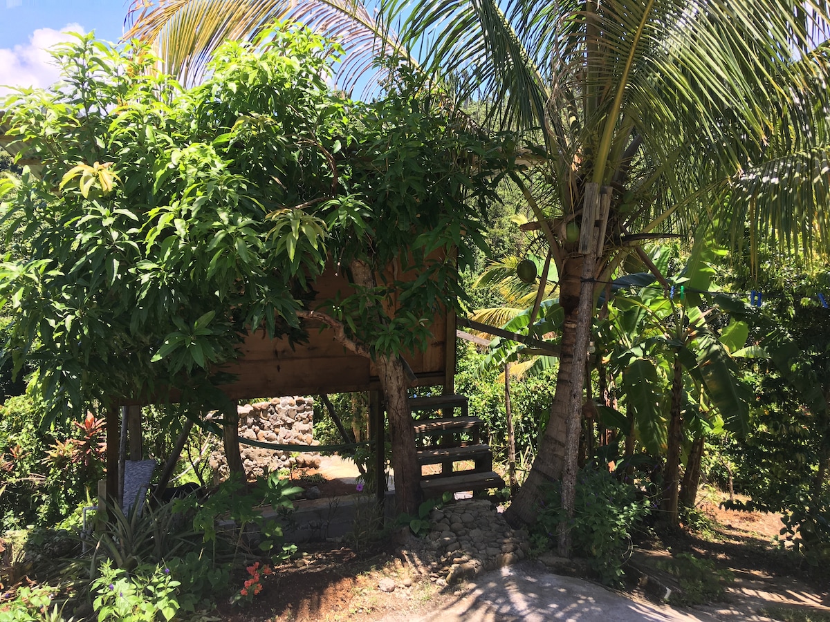 "FouFou Cottage" Seen as "10 Most Affordable Caribbean Destinations" & Safe in Nature CERTIFIED. Sustainably handcrafted, private, self-contained treehouse-style cottage with spacious verandah perfect for birdwatching & relaxing. A natural sanctuary with breathtaking seaviews & cool mountain breezes. A unique, 2 level Open Air, Eco-cottage with Modern Ensuite Bath & Kitchenette. Quiet & Conveniently located less than a mile to sites, restaurants, shops & beaches of Portsmouth.