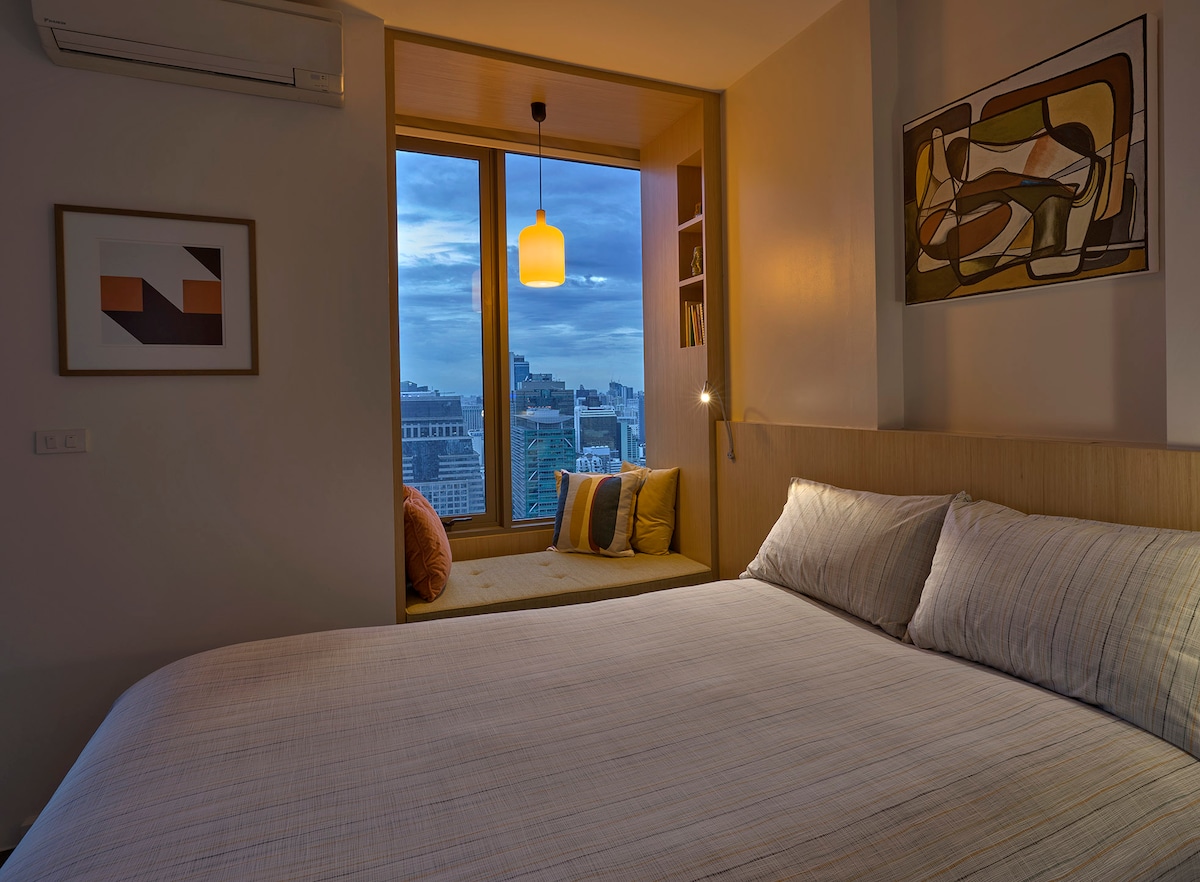 Our spacious (68 sq.m.) room is newly renovated and comes with all the amenities you need. Situated in the heart of Bangkok amidst upscale hotels, it offers easy access to Thailand's top attractions. Just a short 6 mins walk from Sapan Taksin SkyTrain Station, 1 min walk to convenient store, 4 mins walk to department store, our location is incredibly convenient, with renowned dining options, the bustling business district, and popular tourist spots nearby. *There is NO pool and gym for guest*