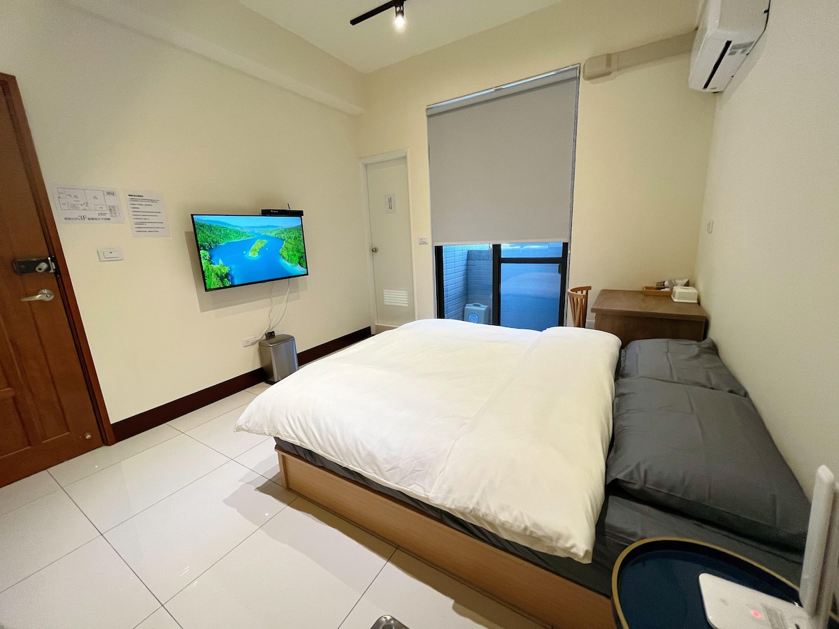 There are 201, 301, 302, 303, four rooms for you to choose from ~ "All have private bathrooms, don't worry" If it's full, you can see which room is available or ask me ~ 201 is the largest on the second floor with a balcony 301 is the only one without a balcony >< the cheapest 303 is bigger than 302. But they both have balconies ~ Both are great ~ "The air conditioner is Daikin, so it will be slower to cool down!!!! But it's still cold!!! Really afraid of the heat, please consider it. "We are a stylish B&B, the sheets are not white like a hotel, they are colored, they are washed every day and some are faded or bleached, but we are also industrial style and do not intend to change them when they are colored, so cleanliness is the main thing, please do not use the hotel mentality to stay in the B&B" Downstairs is a Family Mart convenience store, close to Xiangshang Market, Huamei Market, and Taichung's most cultural and creative Eslite Greenway, to the nearby cultural and creative village, Shenji New Village, and the Green Ray are also not far away, just a walk away. The apartment is equipped with: air conditioning, refrigerator, LCD TV, WiFi, hair dryer, tea cup, indoor slippers, bath towels, towels, toothpaste, shower gel, shampoo, etc. (each room has a large bed, super comfortable sofa in the common space for chatting and resting, photos are available in the listing) Welcome to the most humanistic industrial-style homestay in Taichung City, where you can experience the wonderful local life. Rooms are elegant and comfortable, the environment is good, clean and tidy Private suite, not shared with anyone.