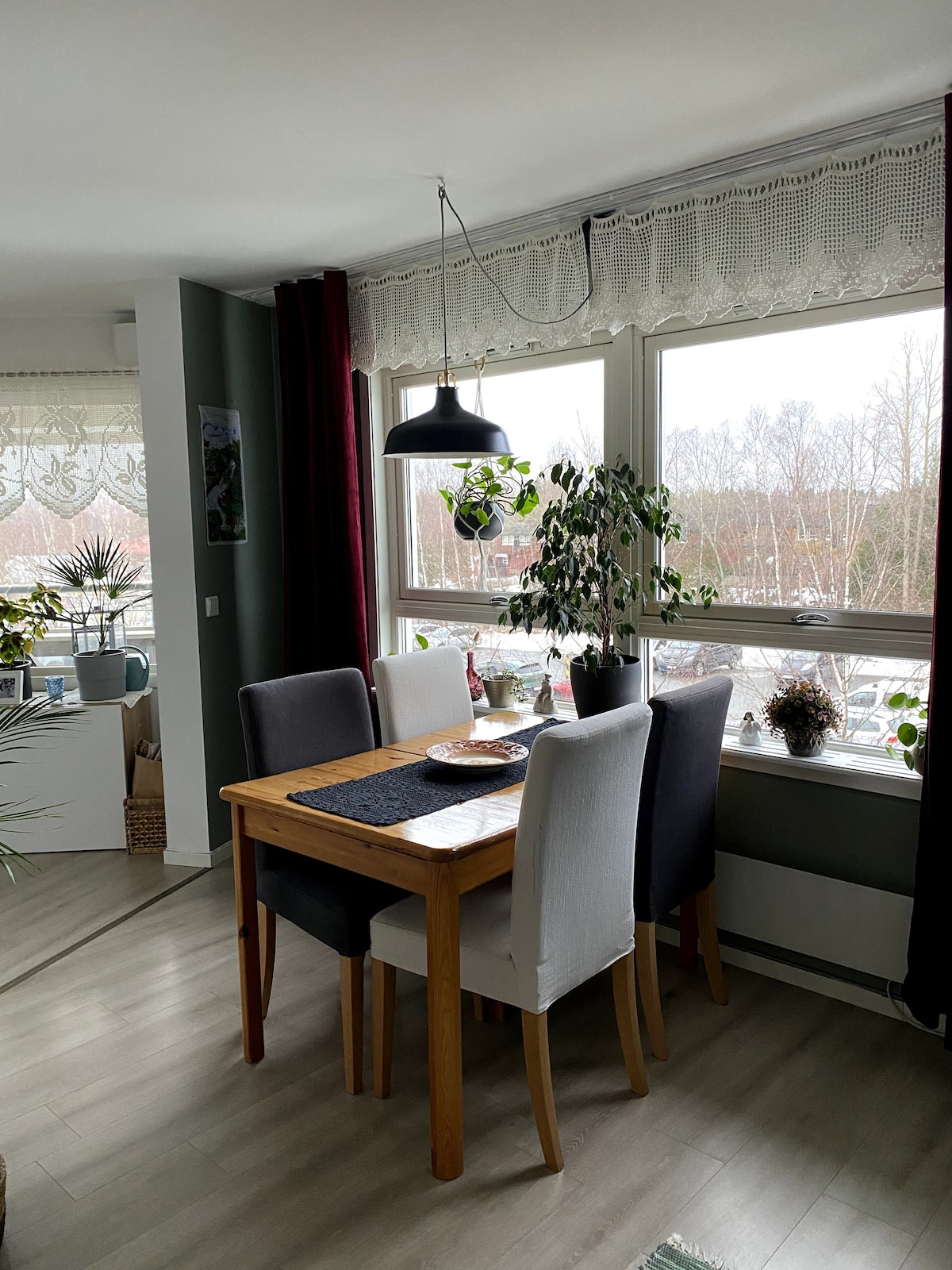 2nd floor apartment with a private entrance. Bright and spacious interior. 3 large bedrooms with a double bed, as well as possibilities for two beds on a sofa bed. Cot in one bedroom. Bed linen and towels are provided. Large and cozy living room and kitchen. Walking distance to the city mark with trail trails connected with Granåsen and the rest of Bymarka. Bus to the city center with frequent departures right down the street, and walking distance to the train station. Access to large parking area.
