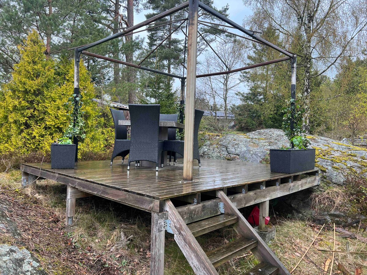 We rent out our cottage, which is a real gem all year round. The location is perfect with a 5-10 minute walk to saltwater swimming and nice viewpoints. By car, you can get to Marstrand in 20 minutes and to Gothenburg in 35 minutes and we recommend having a car. The cottage is older and simple but has been partially renovated in the winter of 2025. It is located on a beautiful natural plot and has a sunroom with a balcony that has sea views. The house is suitable for families with children, friends and couples. Maximum 4 adults but more if they are children.
