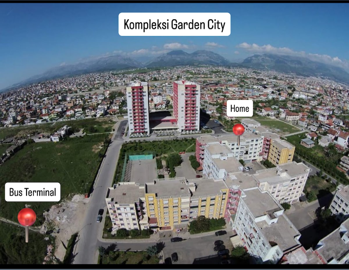 ☀️With 180 degrees panoramic views from east to west.The apartment is 7.9 km from airport TIA ✈️and 8.8 km from center of Tirana🌇 It’s easy to find in center of Kamza Town, the main road that lead to Tirana. On the first floor there are a series of facilities such as Bank, Exchange , supermarkets, Coffee, Pharmacy stores, bus stations etc. Easily visited places are Boville Lake, Kruja Castle, Preza Castle the center of Tirana. The lift is taken up from the 3rd floor.(1,2 floors are business space)