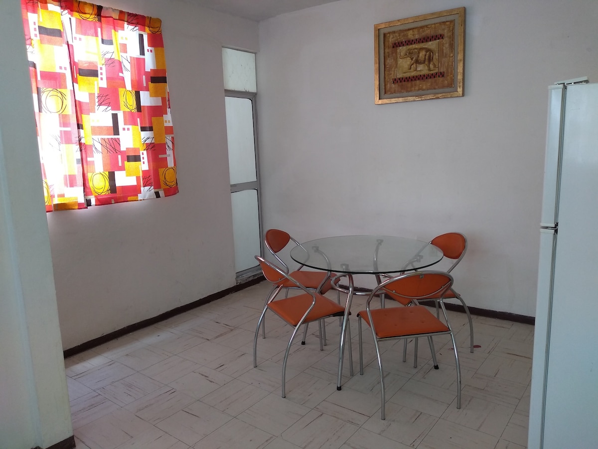 For the same price, book your apartment for up to 2 people on the ground floor, with a comfortable bedroom, cozy living-dining room, kitchen and bathroom. Walking, you'll be just 3-5 minutes from the Cable bus, Quetzalcoatl station. From the Cablebus station to the Constitución subway station, Line 8, it takes approximately 8 minutes.